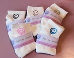 White cotton socks with an embroider smiley face on